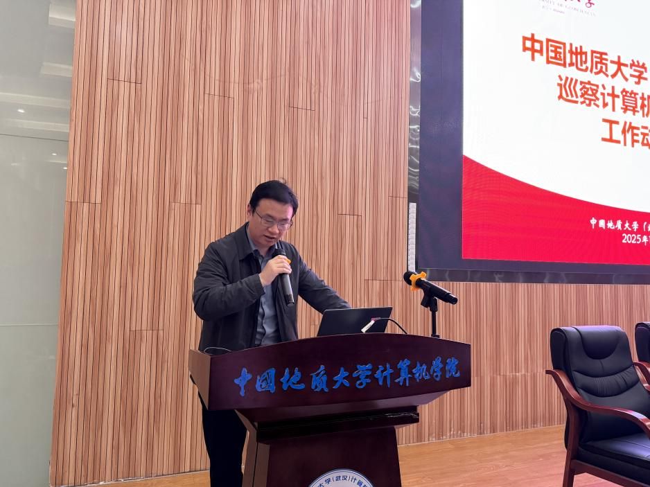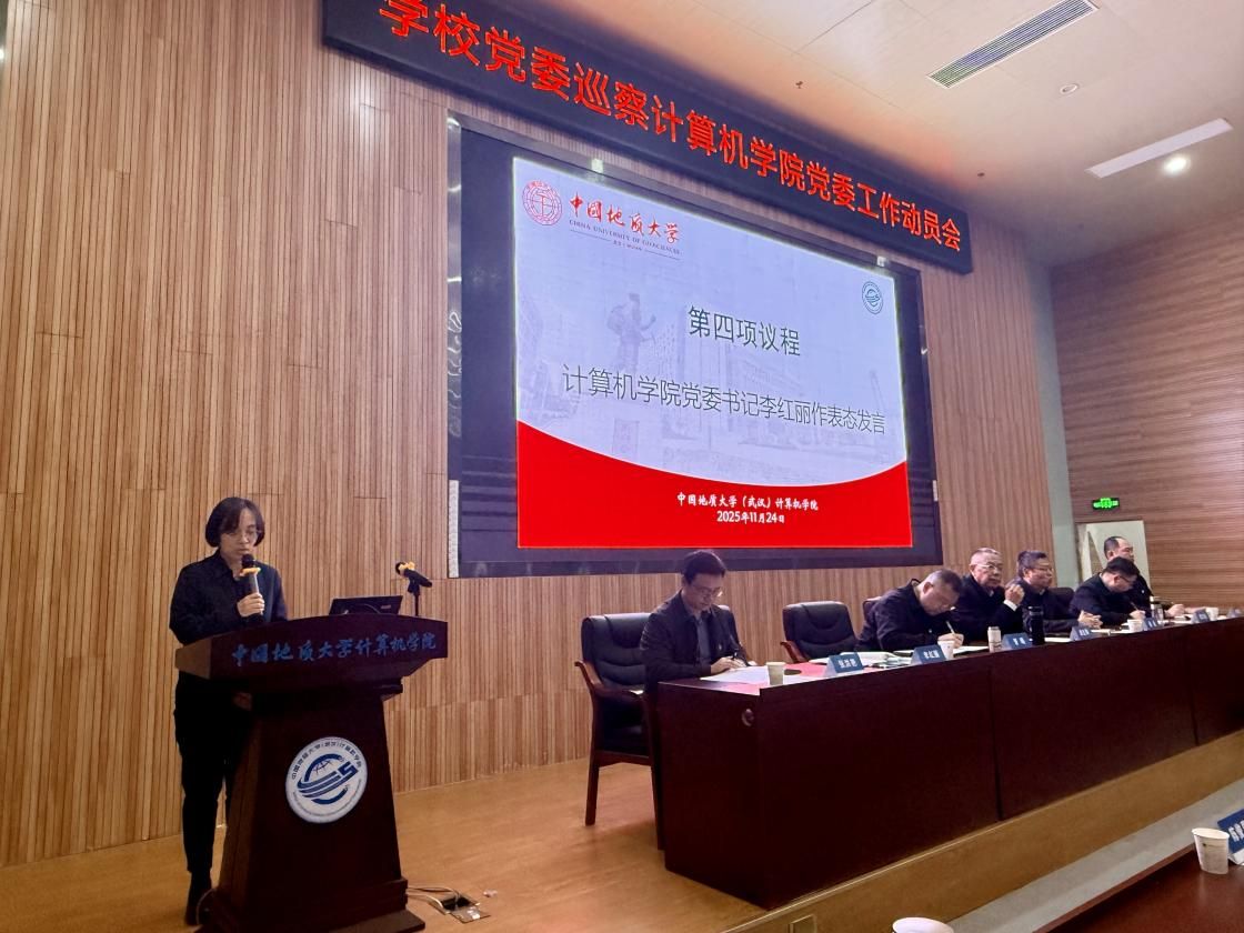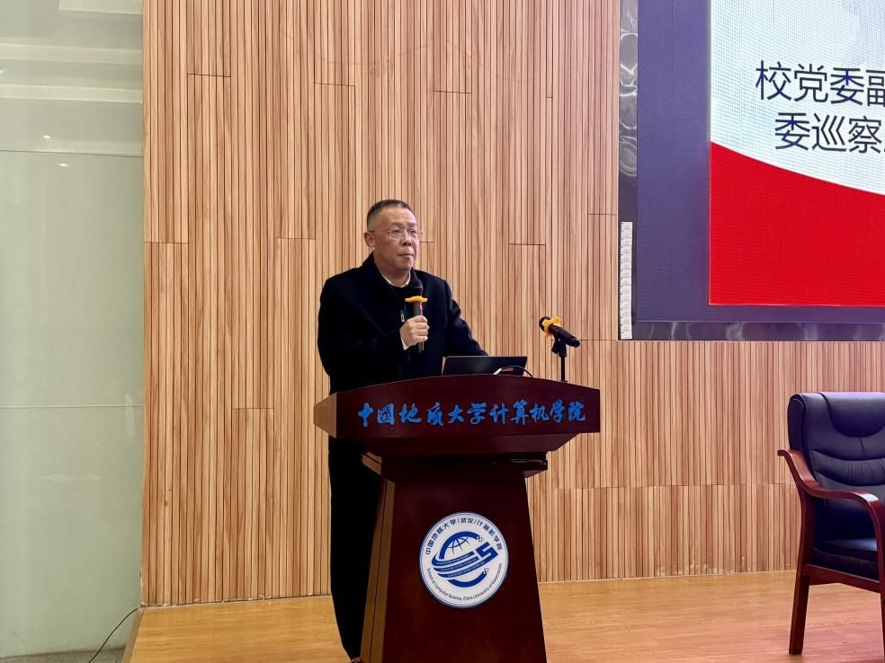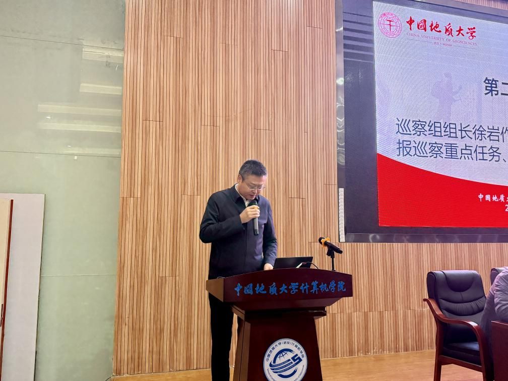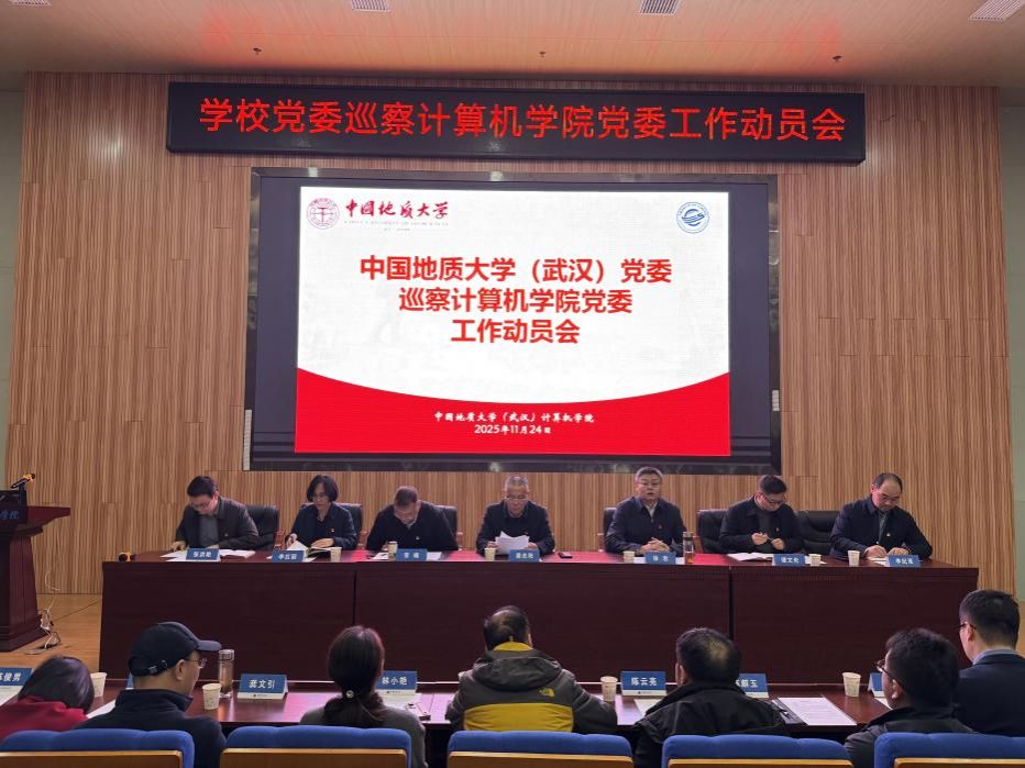 根据中国地质大学(武汉)第三轮巡察工作安排,2025年11月24日上午,校党委巡察计算机学院党委工作动员会在学院126报告厅召开。校党委副书记、纪委书记唐忠阳,校党委巡察办主任晋曦,巡察组组长、公共管理学院党委书记徐岩,副组长、资源学院党委副书记谭文伦,副组长、经济管理学院党委副书记李纪亮,组员邓锡琴、张川、陈俊男、张弛,学院全体教职工、离退休老同志代表、学生代表等120余人参加会议。院长张洪艳主持会议。