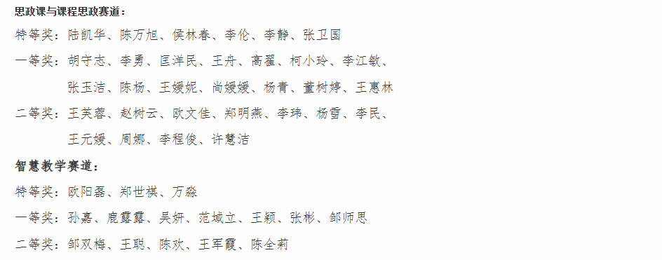 彭雷老师的《算法设计与分析》教案获产教融合赛道特等奖,张夏林老师的《应用开发实习》教案获产教融合赛道一等奖;王媛妮老师的《Python语言程序设计》教案获思政课与课程思政赛道一等奖,李程俊老师的《并行计算》获思政课与课程思政赛道二等奖。