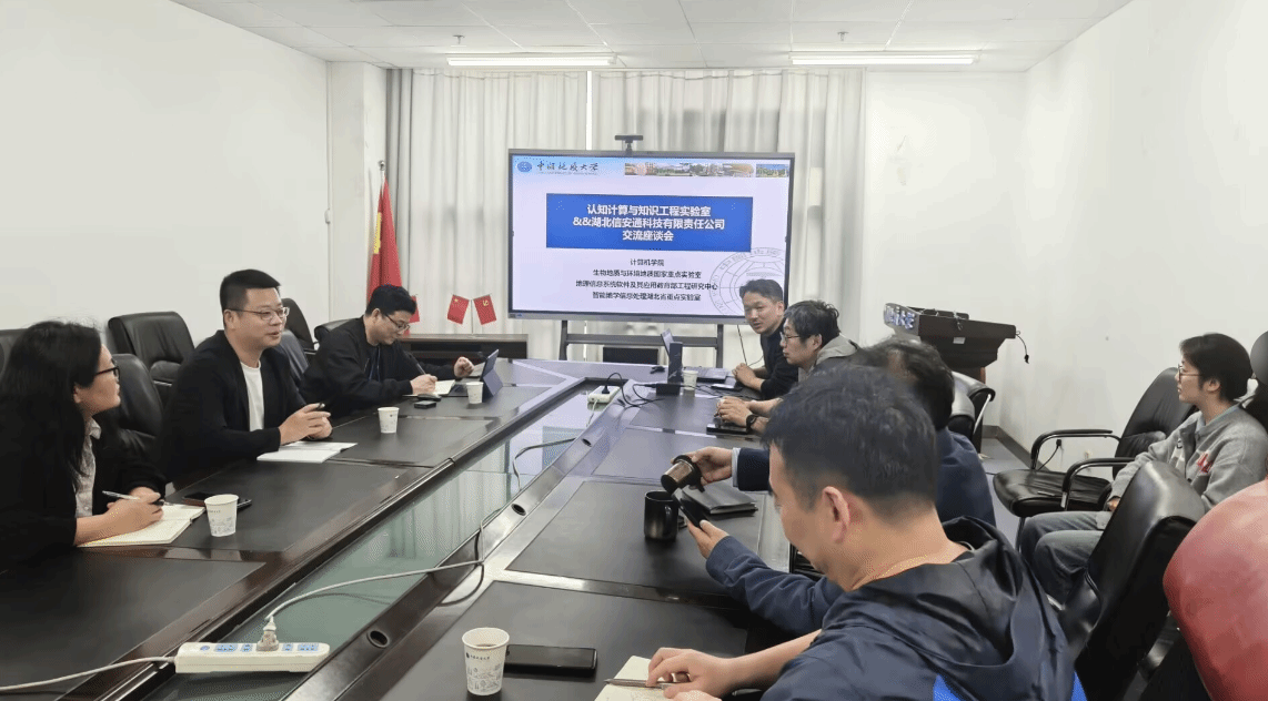 为了推进产教融合、深化校企合作,2026年4月16日下午,应色情直播 刘超老师邀请,湖北信安通科技有限责任公司(简称:信安通公司)总经理张勇、总经理助理夏波、软件研发部经理曾江平等一行来色情直播 556会议室座谈交流。会议由刘超老师主持,色情直播 “认知计算与知识工程”科研团队(简称:科研团队)的姚宏教授、李圣文教授、董理君副教授以及相关研究生代表参加会议。
