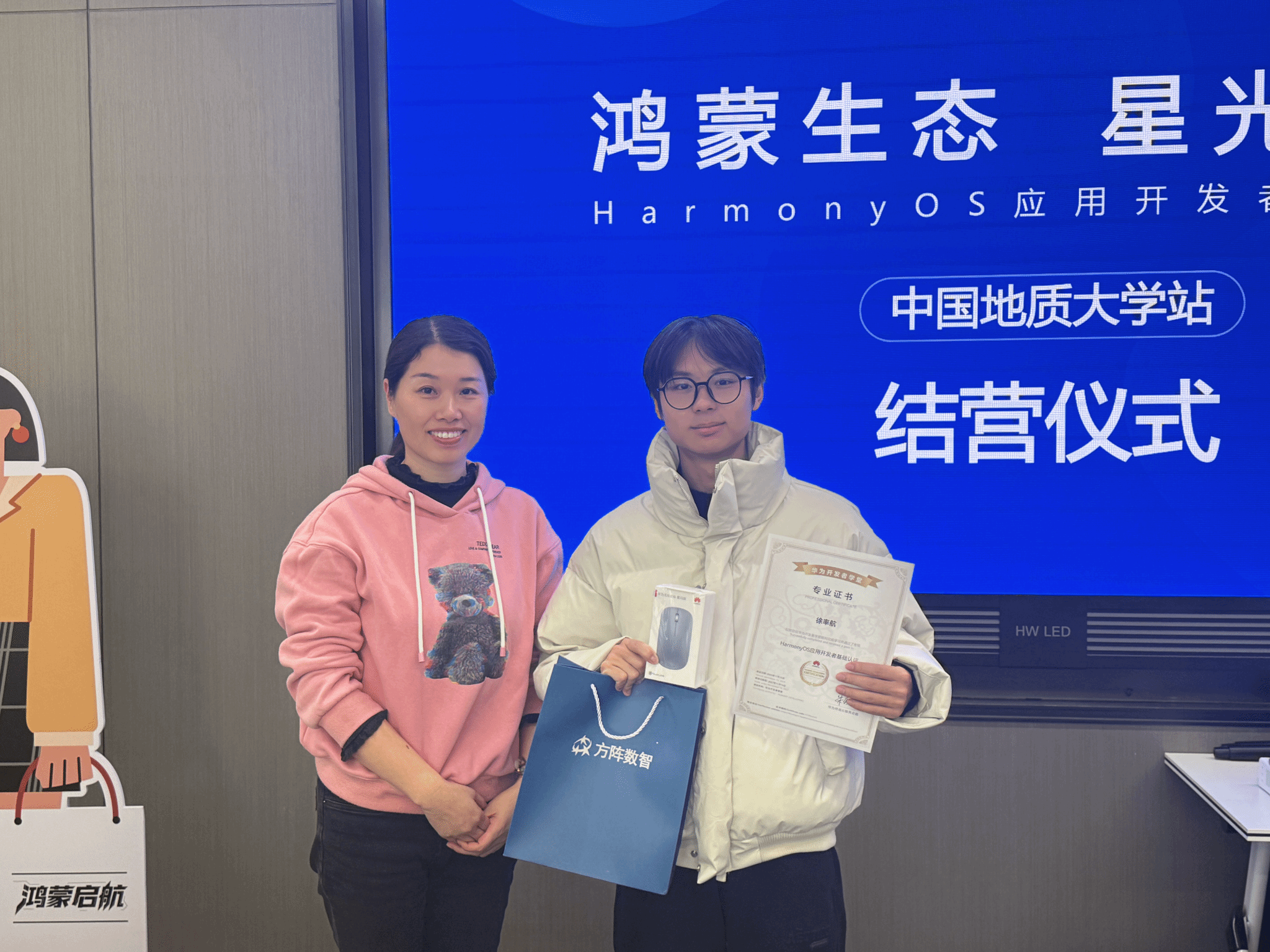 结业仪式上,在学院与鸿蒙生态(武汉)创新中心及武汉方阵信息技术有限公司三方代表的共同见证下,为本次培训中表现优秀的学员们颁发荣誉证书及奖励。方阵集团鸿蒙人才培养负责人马剑威充分肯定学员表现,期待更多学子成为鸿蒙生态的新生力量,方阵数智将继续助力学员不断探索鸿蒙技术,搭建产学研深度融合的重要桥梁。学院党委副书记林小艳说,此次培训是学院推动“校企协同育人”走深走实的重要举措,希望同学们珍惜学习机会,将今天的所见所感,内化为明日刻苦钻研的动力,积极投身于智能科技的时代浪潮。