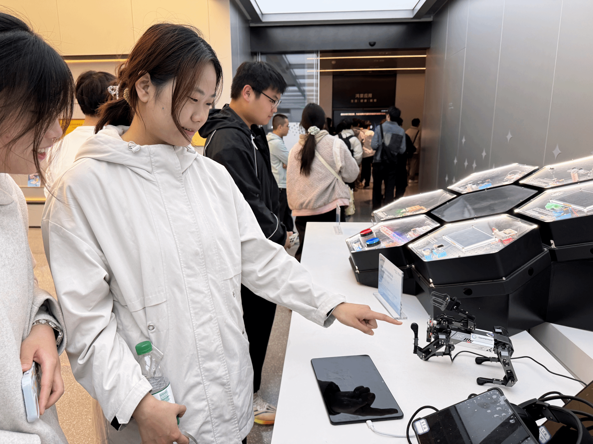 11月27日下午,学院组织28名师生赴鸿蒙生态(武汉)创新中心开展实地参访,近距离体验了鸿蒙系统在智慧工业、智慧电力、智慧医疗、智慧金融、智慧安平、智慧教育等行业的深度应用与创新解决方案。通过现场演示与互动操作,学员们对鸿蒙系统打破设备边界、构建万物互联智能生态的能力有了具象认知。同学们纷纷表示,通过本次参观,不仅直观了解了鸿蒙系统的实用价值与发展潜力,也更坚定了自身要投身智能技术行业的决心。